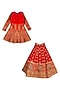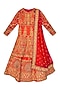 Featuring a red lehenga for girls in glace cotton base with embroidery. It is paired with an embroidered kurta and a dupatta. Style it with sandals and hair accessories for a festive occasion or wedding ceremony.
