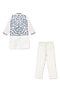 White Glace Cotton Mirror Embroidered Bundi Jacket Set For Boys