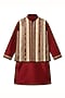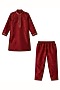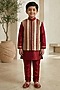 Wine Cotton Silk Lace Embellished Bundi Jacket Set For Boys