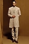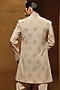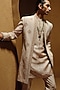 Featuring a beige indo-western jacket in silk wool blend and chanderi base with gota-patti and glass beads embroidery. It is paired with a kurta and pants. Style it with kolhapuri sandals for a festive occasion, cultural event, wedding or engagement ceremony.