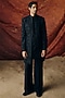 Featuring a black indo-western jacket in silk wool blend base with gota-patti, glass beads and sequins embroidery. It is paired with a chanderi pinctucks embroidered kurta and pants. Style it with a pair of mojaris for a festive occasion, cultural event, wedding, mehendi for engagement ceremony.