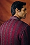 Featuring a deep wine bandhgala jacket in silk wool blend base with gota-patti, glass beads and sequins embroidery. It is paired with an organza embroidered kurta and pants. Style it with a pair of mojaris for a festive occasion, cultural event, wedding, mehendi for engagement ceremony.