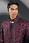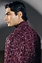 Featuring a deep wine indo-western jacket in silk wool blend base with glass beads, thread and cutwork hand embroidery. It is paired with a chanderi embroidered kurta and pants. Style it with a pair of mojaris for a festive occasion, cultural event, wedding, mehendi for engagement ceremony.