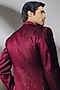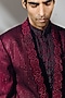 Featuring a deep wine tuxedo jacket in silk wool blend base with dabka and gota hand embroidery. It is paired with an embroidered satin shirt and pants. Style it with a pair of loafers for a wedding for engagement ceremony.