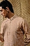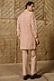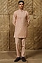 Featuring a dusty pink kurta in silk tissue and wool blend base with gota-patti and matte glass beads hand embroidery. It is paired with pants. Style it with kolhapuri sandals for a festive occasion, cultural event, weddings or pooja ceremony.