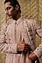 Featuring a dusty pink indowestern jacket in silk wool blend base with gota-patti and matte glass beads hand embroidery. It is paired with a hand embroidered kurta and pants. Style it with kolhapuri sandals for a festive occasion, cultural event, wedding or engagement ceremony.