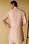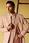 Featuring a dusty pink indo-western jacket in silk wool blend base with gota-patti and glass beads embroidery. It is paired with a kurta and pants. Style it with kolhapuri sandals for a festive occasion, cultural event, wedding or engagement ceremony.