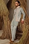Ice Blue Silk Tissue Nehru Jacket Set