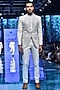 Featuring an ivory tuxedo in wool blend fabric with embroidery and asymmetric lapel. It is paired with matching pants. This contains only two pieces.