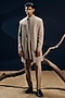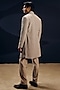 Featuring a mouse grey achkan jacket in silk wool blend base with matte glass bead hand embroidery. It is paired with an embroidered kurta and pants. Perfect attire for a festive occasion or sangeet ceremony, exuding traditional charm and elegance.