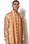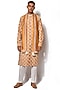 Featuring a mustard yellow kurta in cotton silk base with embroidery. It is paired with pants and a stole. It is paired with pants. Perfect for any festive occasion.