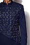 Featuring a navy blue asymmetrical indowestern jacket in wool blend base with pintucks and dabka hand embroidery. It is paired with matching pants. Perfect wear for a wedding or an engagement ceremony.