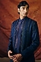 Navy Blue Silk Wool Blend Sequins Embroidered Indo-Western Set