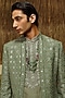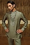 Featuring an olive green bandhgala jacket in chanderi and silk wool blend base with gota-patti and glass beads embroidery. It is paired with a kurta and pants. Style it with kolhapuri sandals for a festive occasion, cultural event, wedding or engagement ceremony.