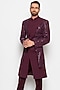 Featuring a wine indo-western antares jacket in wool blend base. It is paired with pants. Perfect for a wedding or reception ceremonies.