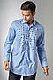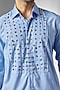 Featuring a blue shirt in giza cotton base with rhinestone embellishments.