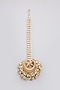 Featuring a 22kt antique gold plated maangtikka studded with faux pearls, set in metal alloy and brass. Perfect for festive occasions and wedding ceremonies, adding a touch of elegance and charm to your look.