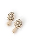 Featuring a pair of 22kt gold plated dangler earrings studded with cubic zirconia and semi-precious stones, set in brass alloy. Add a touch of sparkle to your ensemble, perfect for weddings, cocktail parties or festive celebrations.