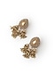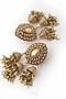 Featuring a pair of 22kt gold plated dangler earrings studded with cubic zirconia and semi-precious stones, set in brass alloy. Add a touch of sparkle to your ensemble, perfect for weddings, cocktail parties or festive celebrations.