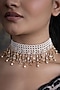 Featuring a 22kt gold plated choker necklace studded with faux pearls and cubic zirconia, set in brass alloy. Add a touch of sparkle to your ensemble, perfect for weddings, cocktail parties or festive celebrations.
