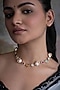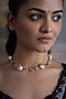 Featuring a 22kt gold plated necklace studded with faux pearls, cubic zirconia and semi-precious stones, set in brass alloy. Add a touch of sparkle to your ensemble, perfect for weddings, cocktail parties or festive celebrations.