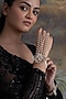 Featuring a pair of 22kt gold plated haathphools studded with faux pearls, chaton stones, glass stones, glass beads, nakshi and dabka work, set in brass alloy, dutch satin and PU. Add a touch of sparkle to your ensemble, perfect for weddings, cocktail parties or festive celebrations.