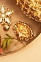 Featuring a 22kt gold plated hair accessory studded with faux pearls, set in brass alloy and acrylic. Style it over loose waves or any open hairstyle for a regal touch, perfect for weddings, festive functions or cultural celebrations.
