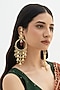 Featuring a pair of 22kt gold plated chandbali earrings studded with faux pearls, semi-precious stones and mirror work, set in brass alloy. Perfect choice for weddings or other Indian festivities.