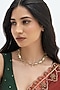 Featuring a 22kt gold plated choker necklace studded with faux pearls and mirror work, set in brass alloy. Perfect choice for weddings or other Indian festivities.