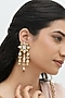 Featuring a pair of 22kt gold plated dangler earrings studded with faux pearls and mirror work, set in brass alloy. Perfect choice for weddings or other Indian festivities.