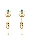 Featuring a pair of 22kt gold plated dangler detachable earrings studded with faux pearls, semi-precious stones and mirror work, set in brass alloy. Perfect choice for weddings or other Indian festivities.
