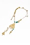 Featuring a 22kt gold plated pendant charm necklace studded with faux pearls, semi-precious stones and mirror work, set in brass alloy. Perfect choice for weddings or other Indian festivities.
