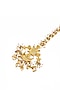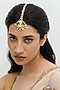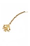 Featuring a 22kt gold plated maangtikka studded with faux pearls and mirror work, set in brass alloy. Perfect choice for weddings or other Indian festivities.