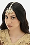 Featuring a 22kt gold plated maangtikka studded with faux pearls and mirror work, set in brass alloy. Perfect choice for weddings or other Indian festivities.