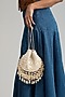 Featuring an ivory bag in suede base with glass beads, faux pearls, zari, thread and MOP shells embroidery. Add a touch of sparkle to your ensemble, perfect for wedding ceremonies or festive celebrations.