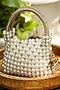 Silver Plated Brass Metal Acrylic & Faux Pearl Embroidered Handbag