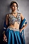 Featuring a blue lehenga in dupion silk and organza base with hand and machine embroidery. It is paired with an embroidered blouse and a dupatta. Accentuate with statement jewellery and heels for wedding ceremony.