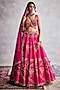 Fuchsia Pink Dupion Silk & Organza Floral Embroidered Lehenga Set
