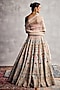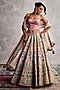 Featuring an ivory lehenga in dupion silk and organza base with floral hand and machine embroidery. It is paired with a pink tissue corset and an ivory dupatta. Accentuate with statement jewellery and heels for wedding ceremony.