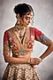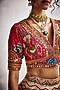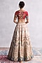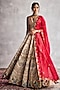 Featuring an ivory lehenga in dupion silk and organza base with thread hand and machine embroidery. It is paired with a scarlet red embroidered blouse and a dupatta. Accentuate with statement jewellery and heels for wedding ceremony.