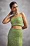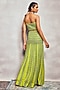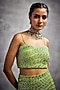 Featuring a lime green bustier in silk georgette base with hand embroidery. It is paired with an embroidered slit skirt. Accentuate with statement jewellery and heels for cocktail ceremony.
