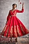 Red Dupion Silk Thread Embroidered Angrakha Kurta Set