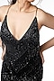 Featuring a black strappy evening gown in nylon mesh base with sequins embroidery.