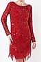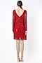 Featuring a red mini dress in nylon mesh base with hand embellishments and fringes.