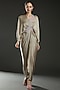 Featuring a beige draped kaftan dress in hammered satin base with rubber cording detail.