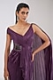 Featuring a berry colored saree in metallic polymer and crepe chiffon base. Accentuate it with diamond earrings and heels for cocktail parties.