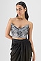 Featuring a black metallic bustier in chiffon and polyester base with hand-woven textiles detail. It is paired with a draped skirt. Accentuate with statement jewellery and heels for a cocktail party or sangeet ceremony.