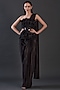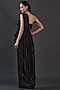 Featuring a black draped peplum gown in jersey and organza base with hand embroidery.