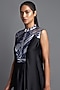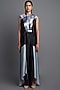 Featuring a black metallic draped dress in chiffon base with a handwoven metallic polymer marbled yoke and panels.