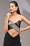 Featuring a black and silver top in metallic polymer and crepe chiffon base. It is paired with a black skirt. Accentuate with statement jewellery and heels for a cocktail party.